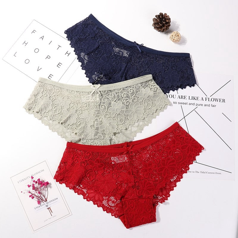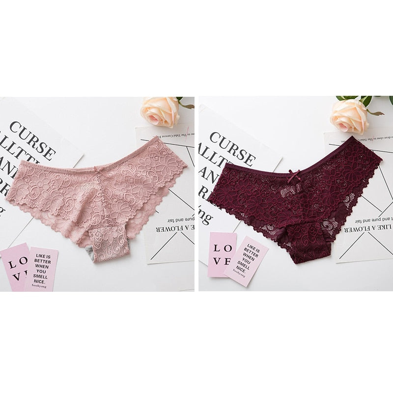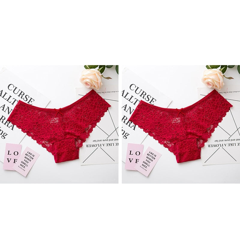 Women Sexy Lace Lingerie Low-waist Panties Embroidery Tempting Briefs Transparent Hollow out Underwear Female Underpants