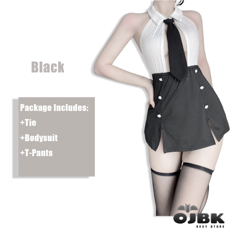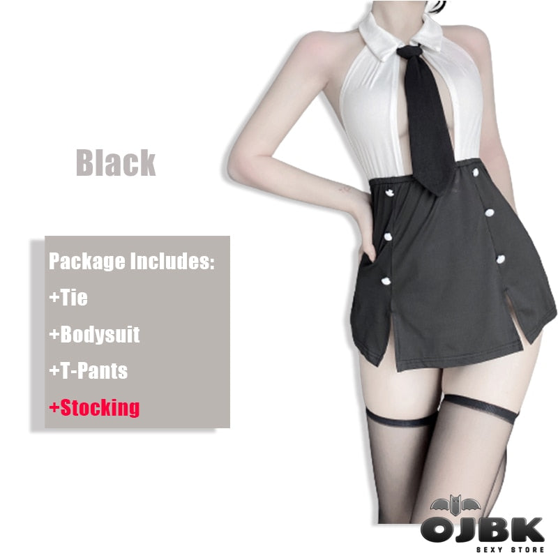 Women Sexy Lingerie Open Chest Pencil Skirt Office Lady Erotic Cosplay Costumes Outfits White Black Seductive Secretary Uniform
