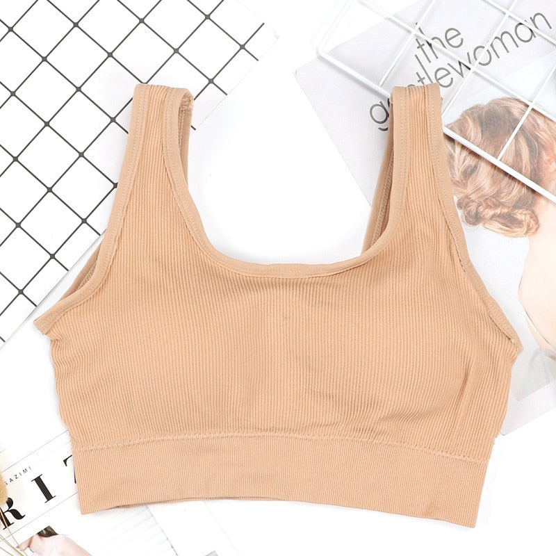 Women Tank Crop Top Bralette Top Seamless Underwear Female Crop Top Sexy Lingerie Cropped Cami Removable Cups Padded Camisole
