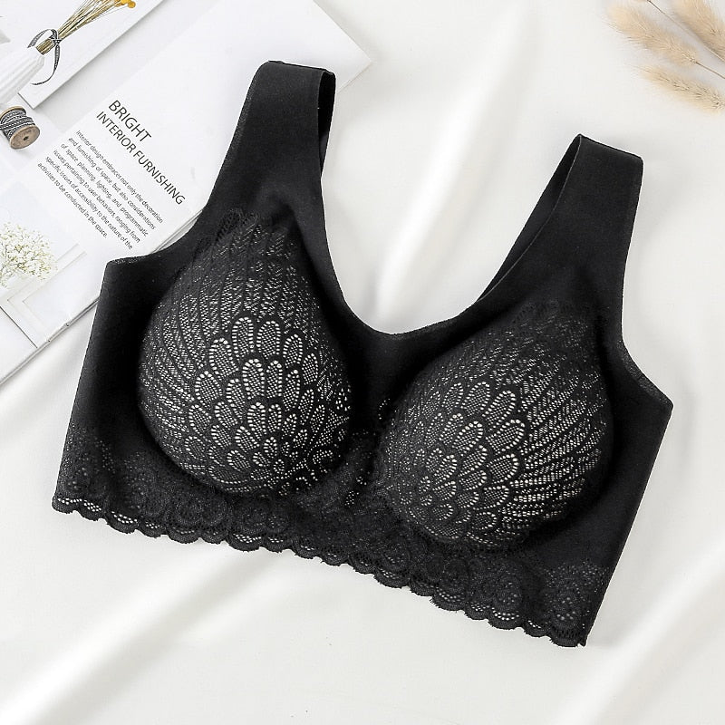 Women Underwear Sexy Lingerie Lace Solid Color Lace Cross Wireless Push up Breathable Bra Female Seamless Soft Padded Brasserie
