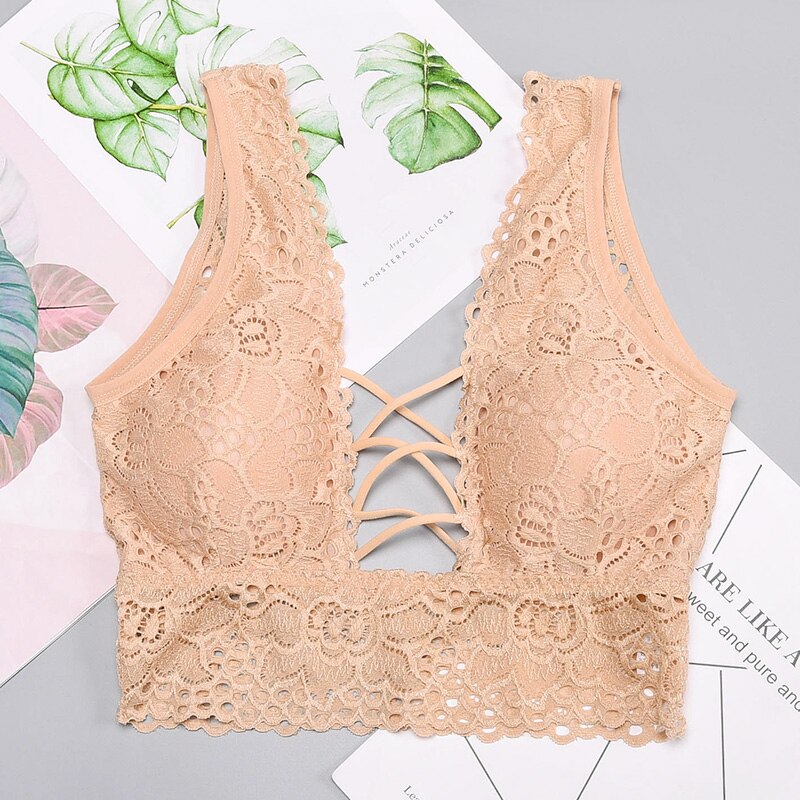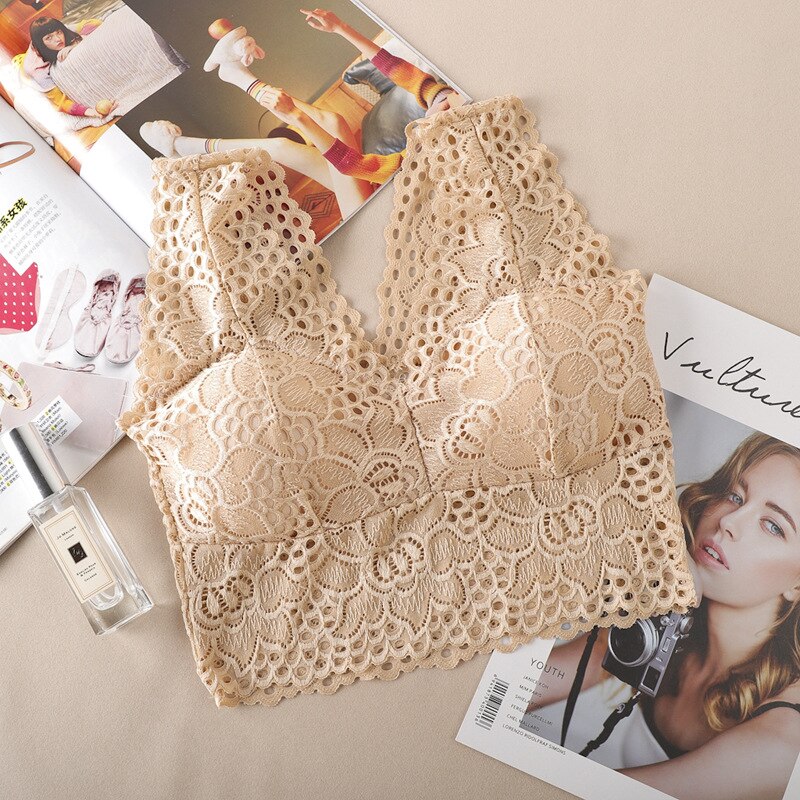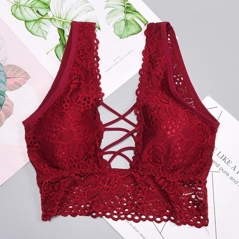 Women's Deep V Lingerie Sexy Lace Flower Bra Lingerie Lace Bra Cultural Bra Top