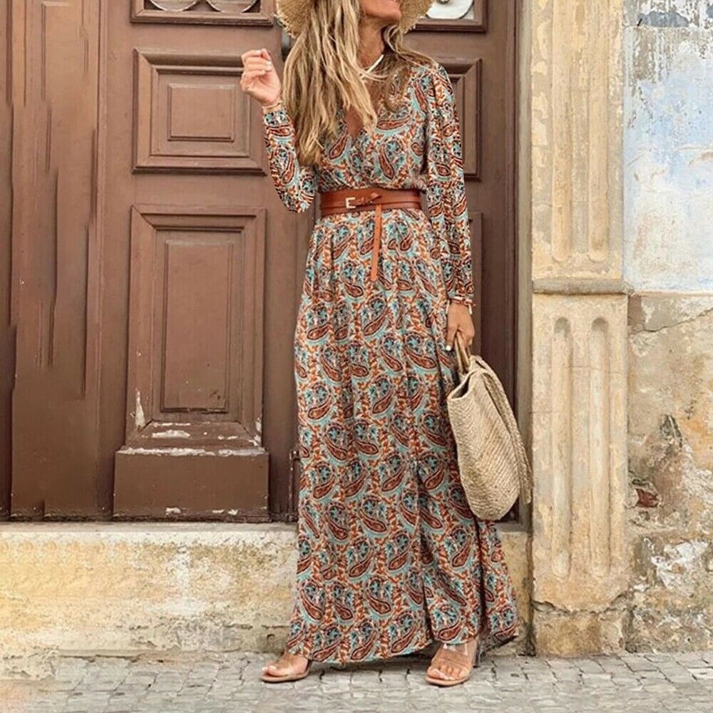 Women's Dress Summer Casual Boho Bohemian Long 2021 Chiffon Oversize Short Sleeve Maxi Beach Dress Casual Elegant Sundress
