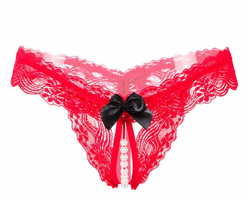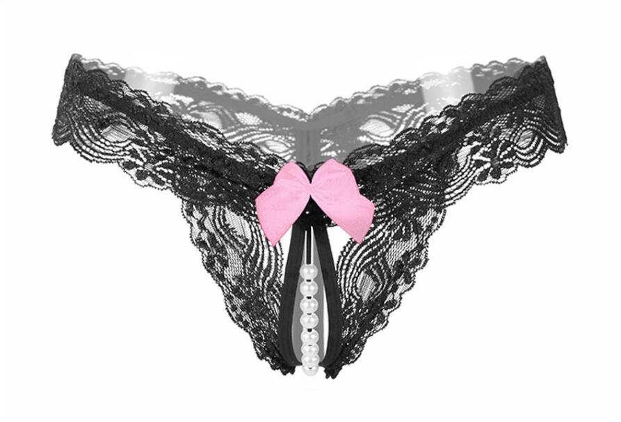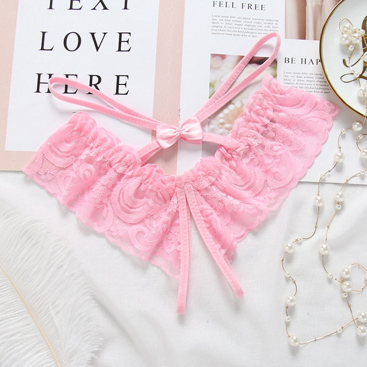 Women's sexy lace underwear open C mesh panties bowknot thong sexy underwear hollow erotic lingerie ladies low waist panties