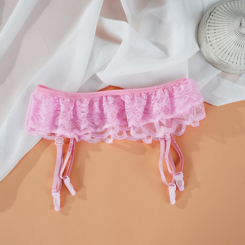 Women's Sexy Lingerie Lace Garters Suspenders Goth Harness Belt Thigh Garter for Stocking Sheer Pink Ladies Intimates 4 Colors