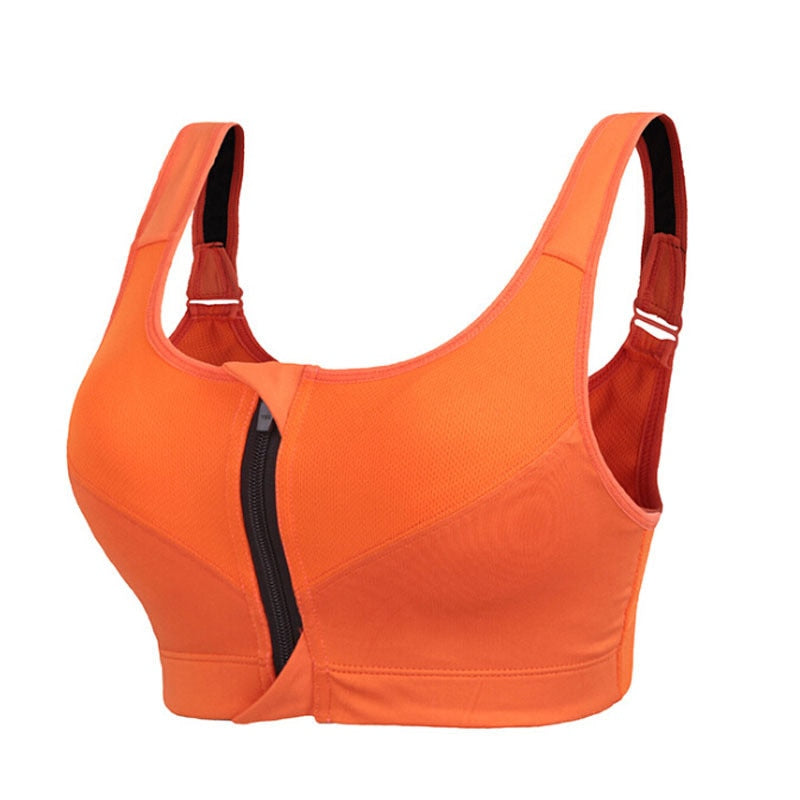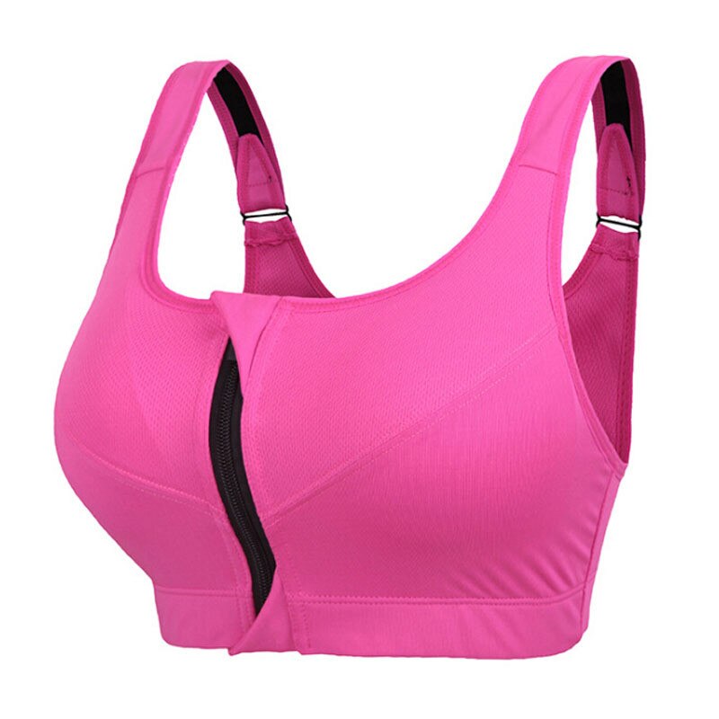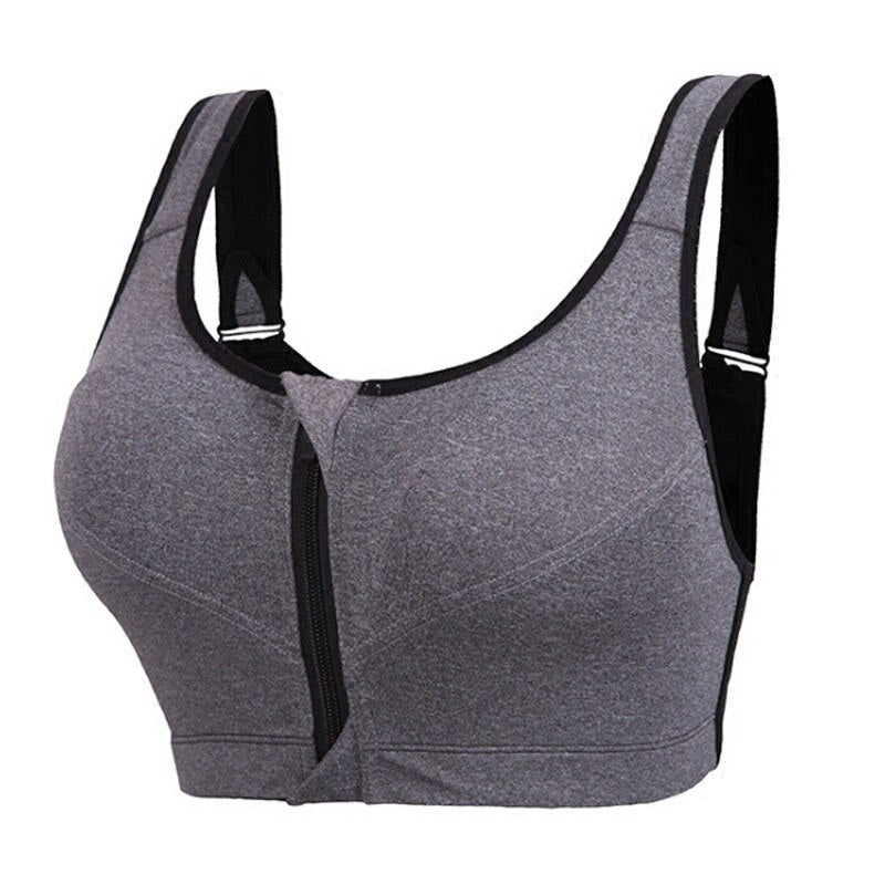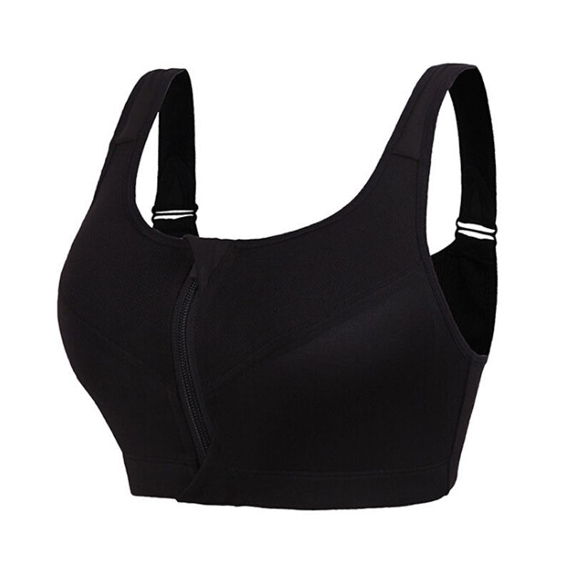 Women's Sports Bra Gathered Without Steel Ring Yoga Running Vest Fitness Front Zipper Sexy Shockproof Underwear Plus Size Solid