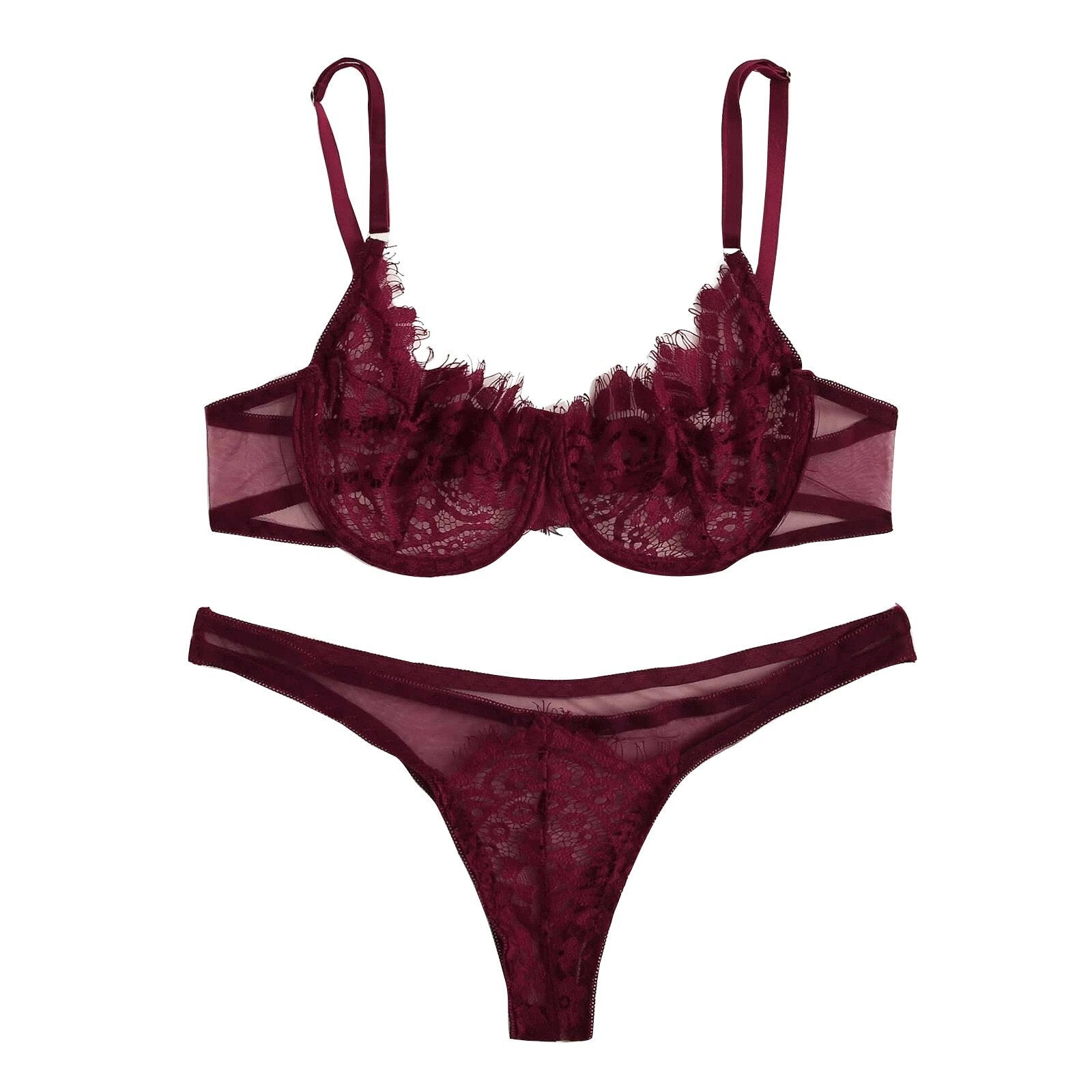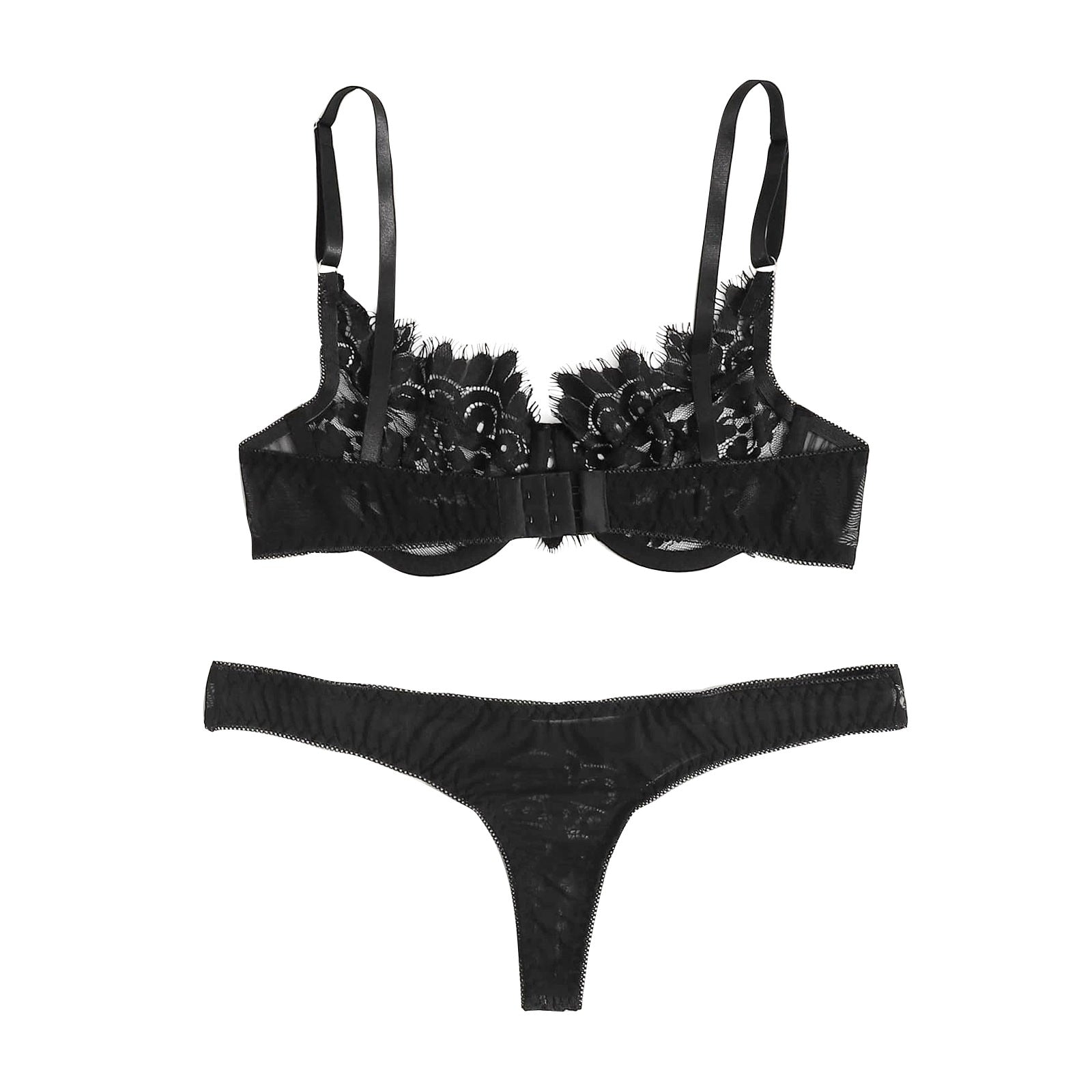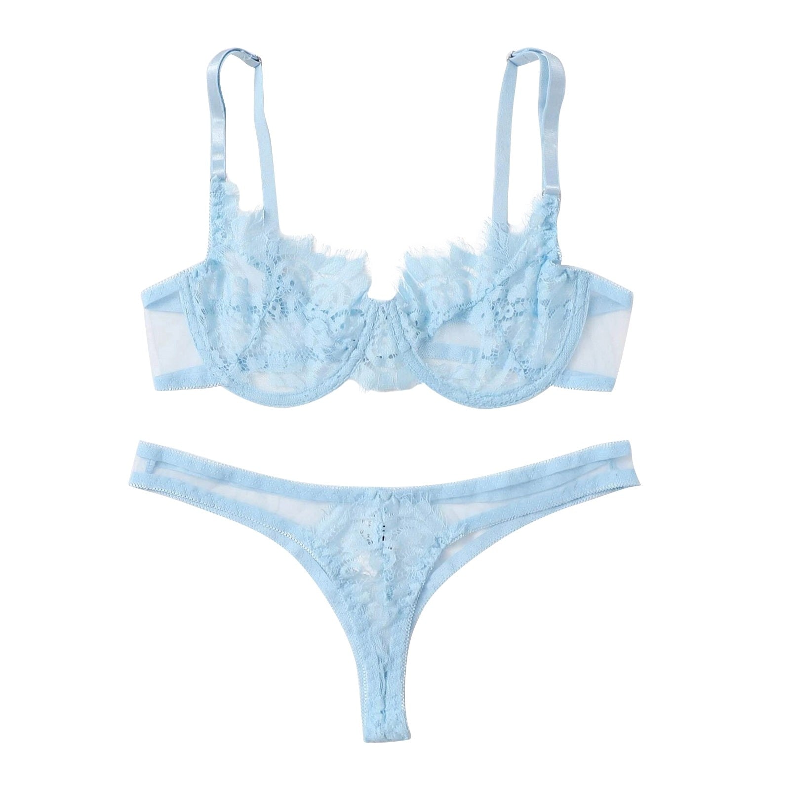 Women's Underwear Sexy Lace Temptation Three Point Lingerie Push Up Bra With Steel Ring Underwear Sets Transparent Bra Thong Set