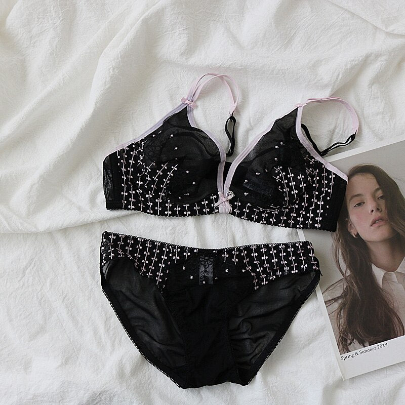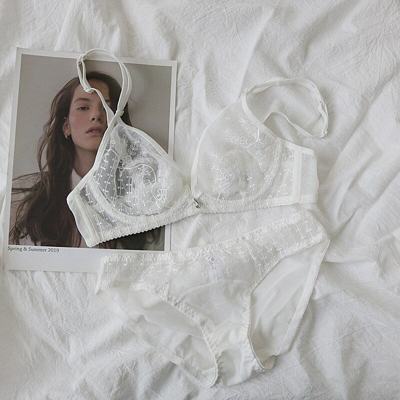 Wriufred Embroidered ultra-thin bra set with steel ring larger size women sexy comfortable breast display sexy underwear set