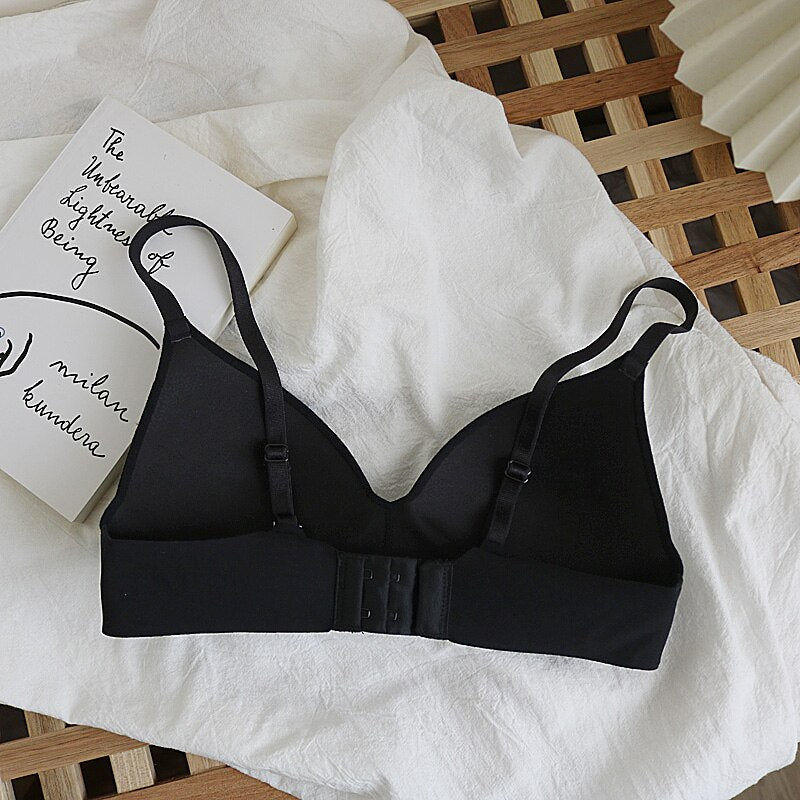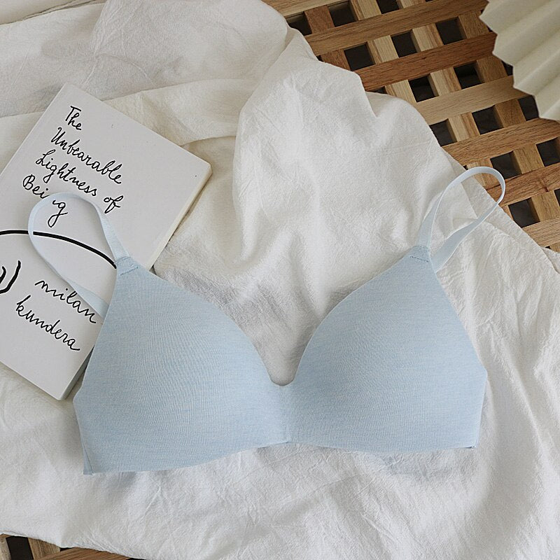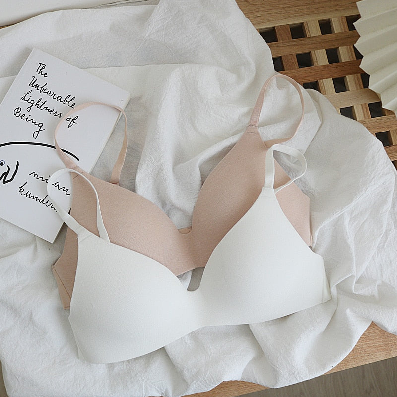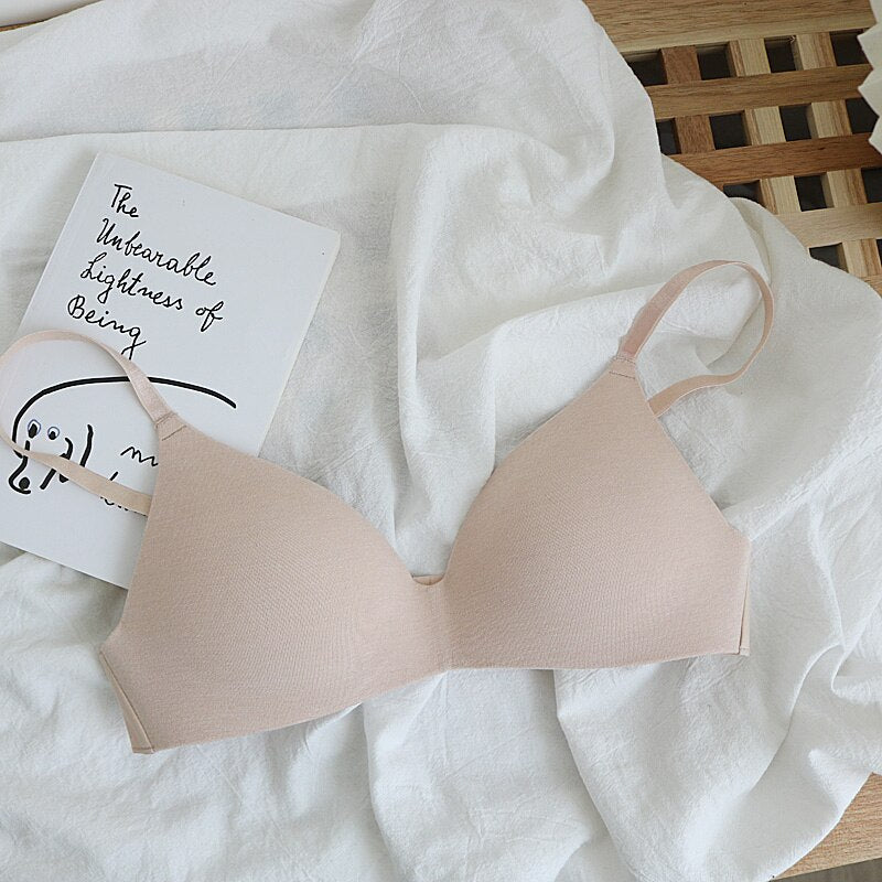 Wriufred Nude cotton no steel ring simple women's underwear soft and comfortable seamless bra natural gathering thin lingerie