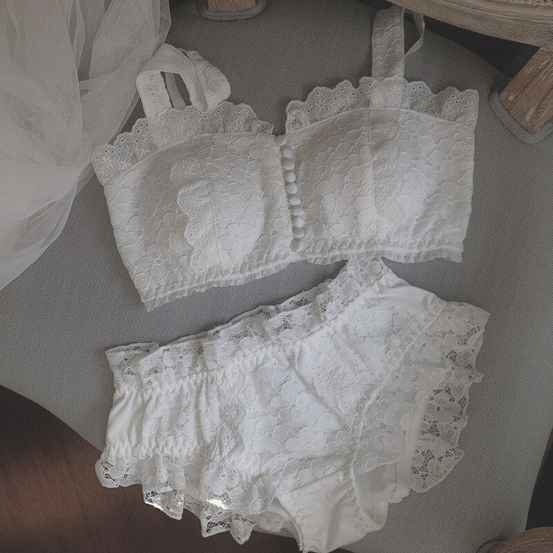 Wriufred Palace Retro Romantic Front-Breasted Vest Bra Set Mermaid Lace Suspender Underwear Female Cotton Lingerie with Panties