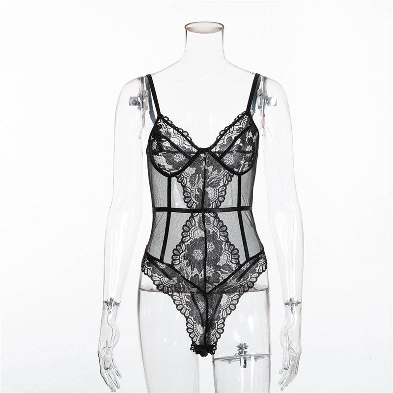 Yimunancy Floral Lace Bodysuit Women Patchwork Mesh Bodysuit 2021 Ladies Summer Skinny Sexy Teddy Bodysuit Body Femme