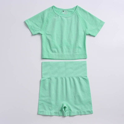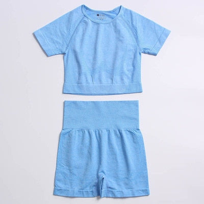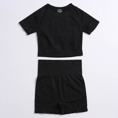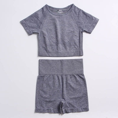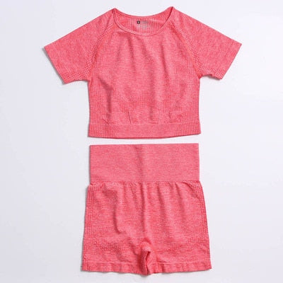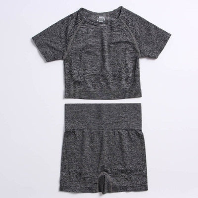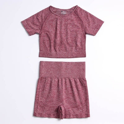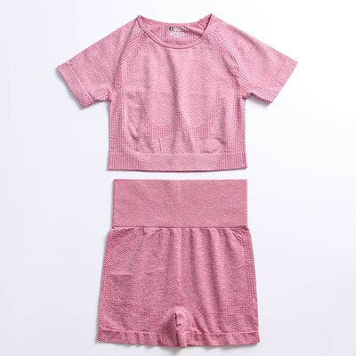 Yvlvol elasticity sportswear high waist running fitness 2pieces set tracksuit women knitting Ttops +pants women