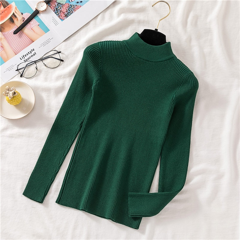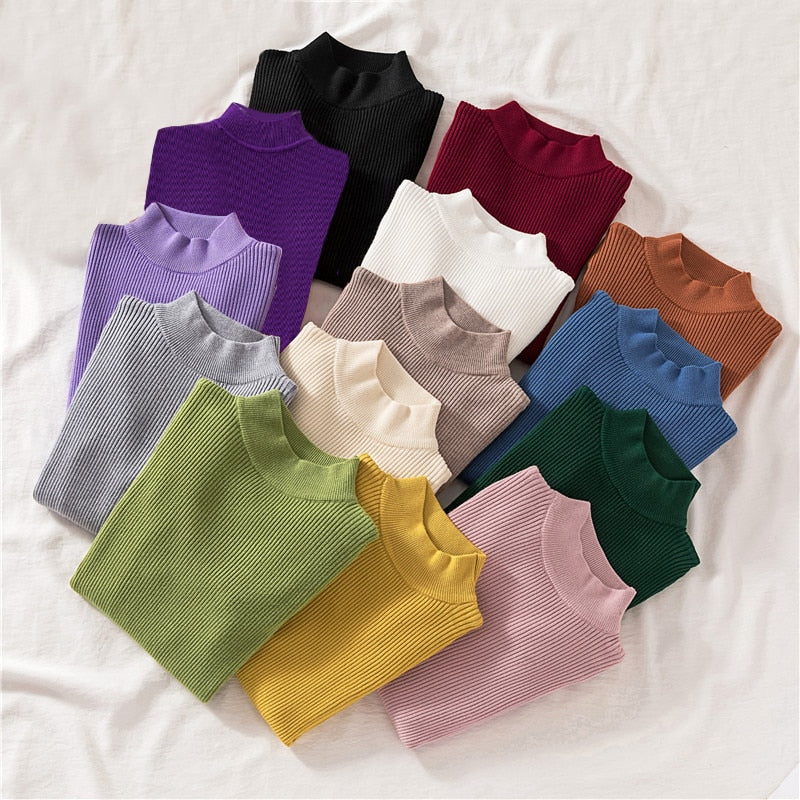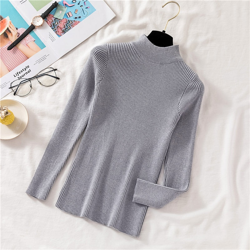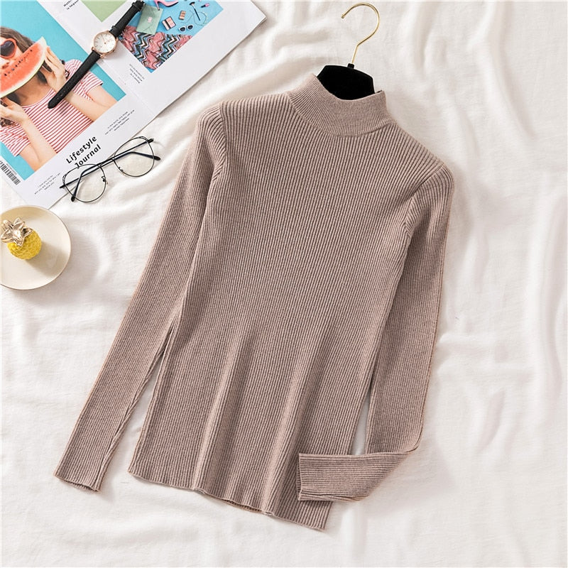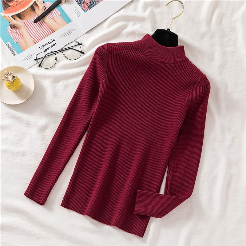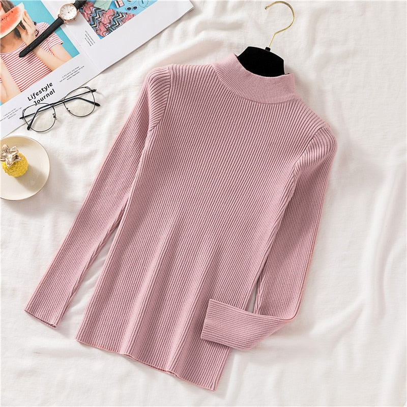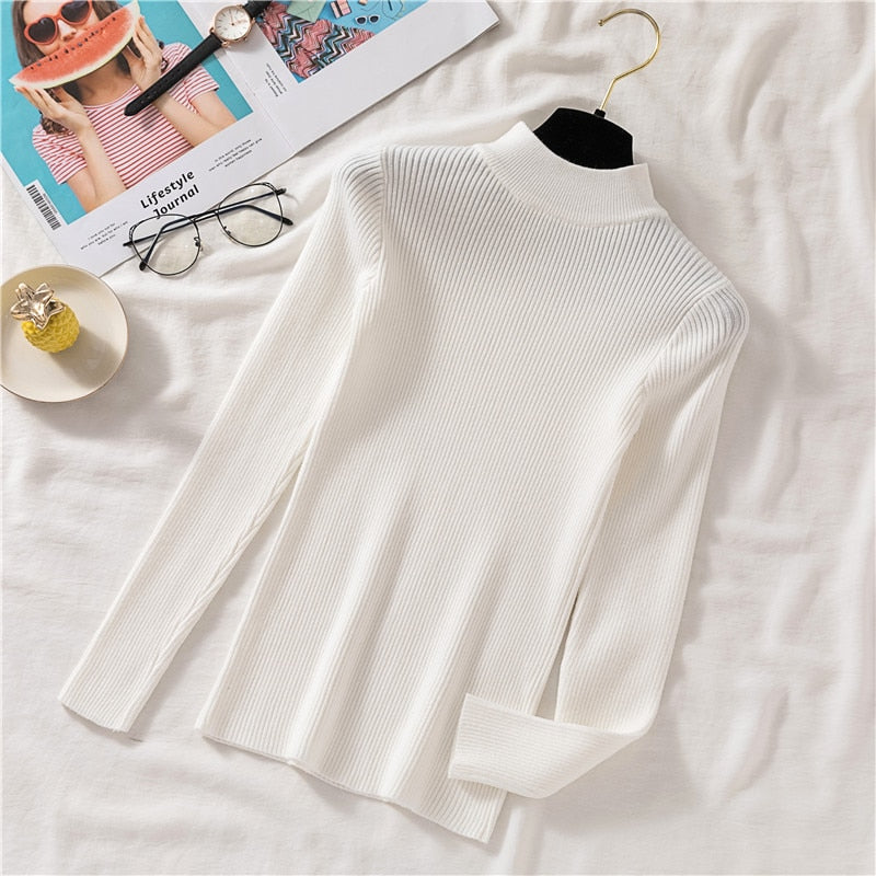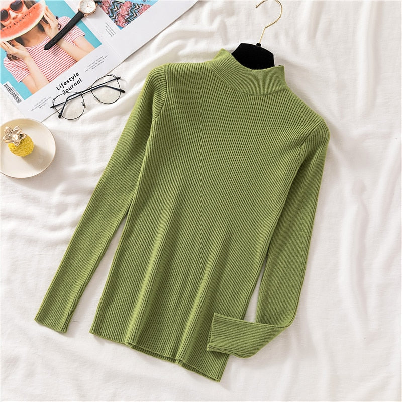 Zoki Autumn Women Pullover Sweater Half Turtleneck Long Sleeve Knitted Jumper Winter Elastic Solid Basic Ladies Blouse New 2021