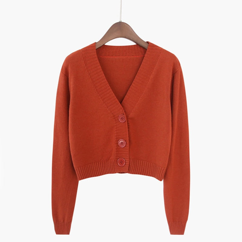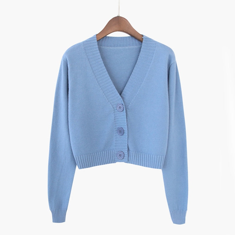 Zoki Corp Cardigan Sweater Autumn Long Sleeve Soft Sexy V Neck Knitted Korean Short Top Casual Single Breasted Pink Thin Blouse