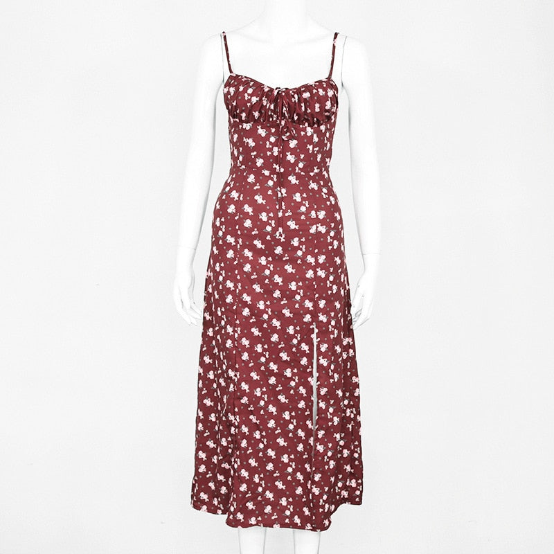 Zoki Floral Print Women Long Dress Sexy Split Off Shoulder Summer Dress Spaghetti Strap High Waist Beach Female Chic Vestidos