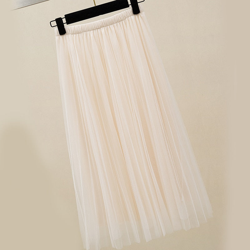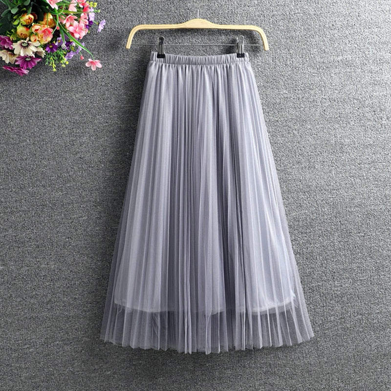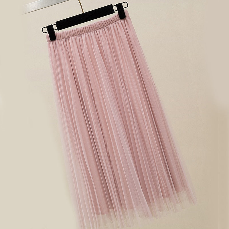 Zoki New 2021 Women Tulle Skirt Elastic High Waist Mesh Spring Summer Fashion Long Skirt A Line Black Girl Korean Pleated Faldas