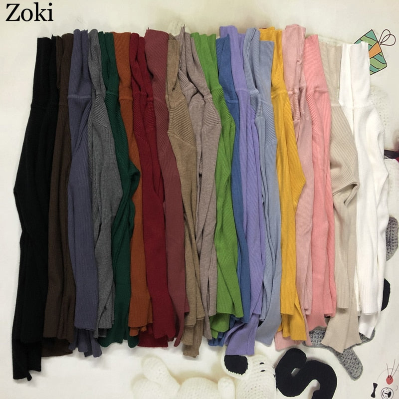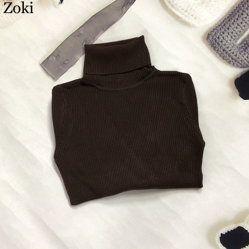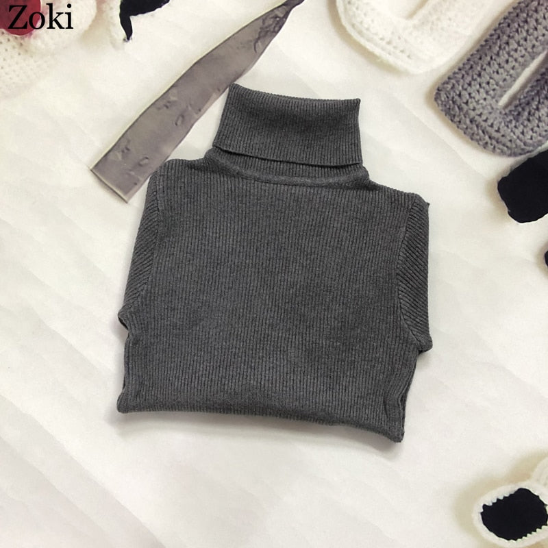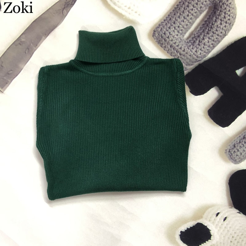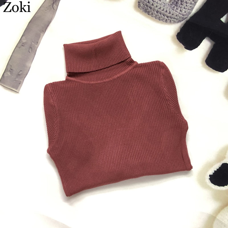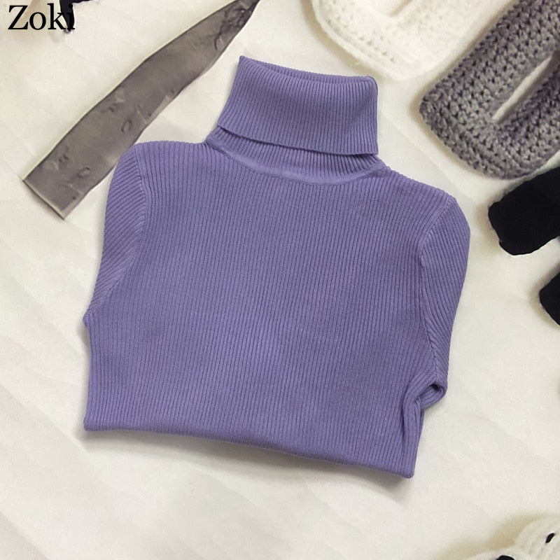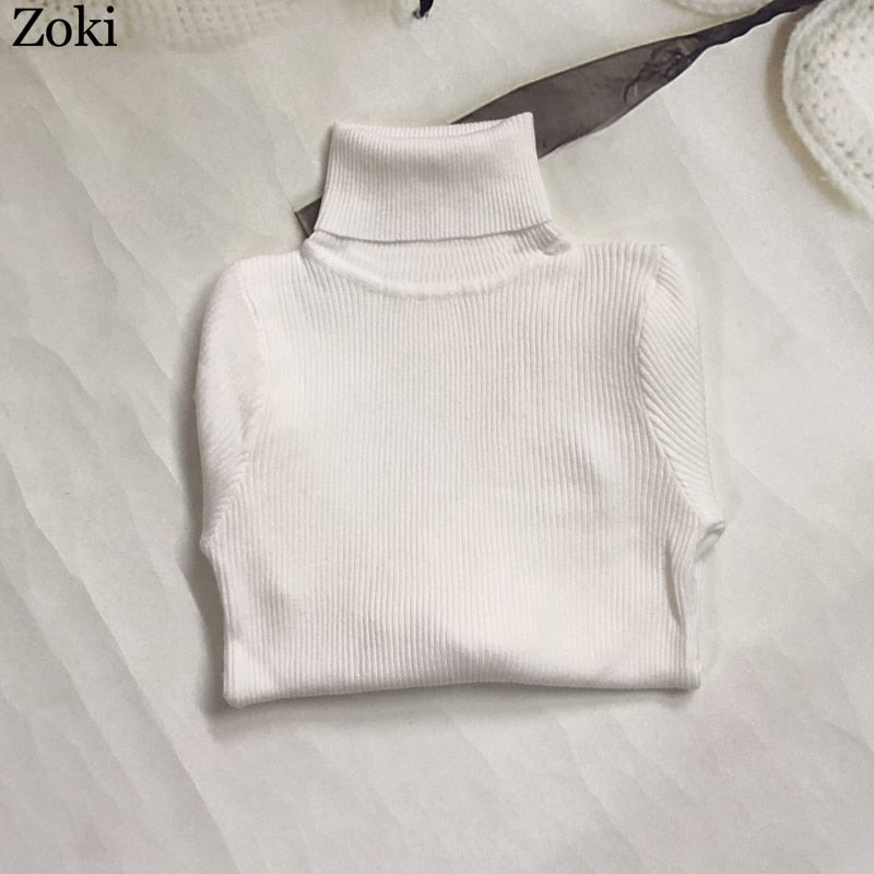 Zoki Soft Women Turtleneck Sweater Autumn Long Sleeve Elastic Female Knitted Jumper Casual Pullover Slim Winter Basic Tops 2021